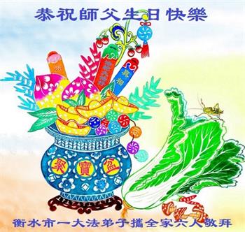 师父生日快乐! 法轮大法好!真善忍好! 身为大法弟子家人,非常支持大法弟子在乱世中救人,非常感谢大法师父教出这么好的弟子!师父辛苦了!我有好几次在师父的保护下,化险为夷,转危为安。我深深知道是大法师父的慈悲保护!师父也为我操心了!再一次感谢师父!盼望着早日与师父在中华大地、神传文化的故乡相见! 河北沧州市一老年学法小组大法弟子恭祝师父生日快乐!师父您好!同庆世界法轮大法日!