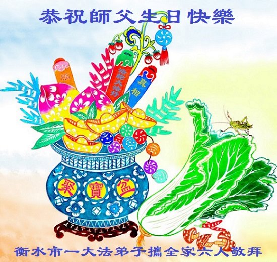 河北省衡水市一大法弟子携全家六人恭祝师父生日快乐!