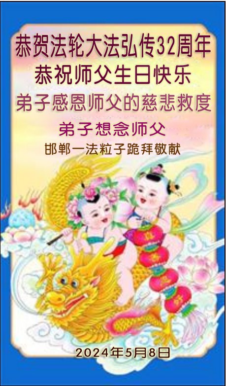 【明慧网二零二四年五月十三日】 河北省邯郸全体大法弟子恭祝师父华诞!