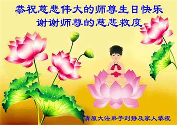 辽宁省抚顺市清原县大法弟子刘静及家人恭祝师尊生日快乐!恭贺世界法轮大法日!