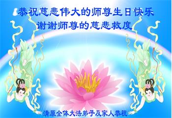 恭祝慈悲伟大的师尊华诞暨法轮大法传世三十二周年!普天同庆世界法轮大法日! 我们是辽宁抚顺望花大法弟子,感恩师尊的慈悲苦度。我们在学法修心,互相圆容,整体配合,一步步走向成熟。在师尊的引领下,我们越来越成熟,稳定。借师尊华诞之际,表达弟子们的感恩:师尊辛苦了!弟子谢师恩! 辽宁抚顺望花大法弟子敬上 二零二四年五月八日 辽宁省营口大石桥大法弟子母女及未修炼家人恭祝师尊华诞!庆祝5.13世界法轮大法日!