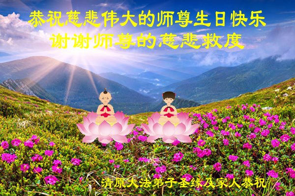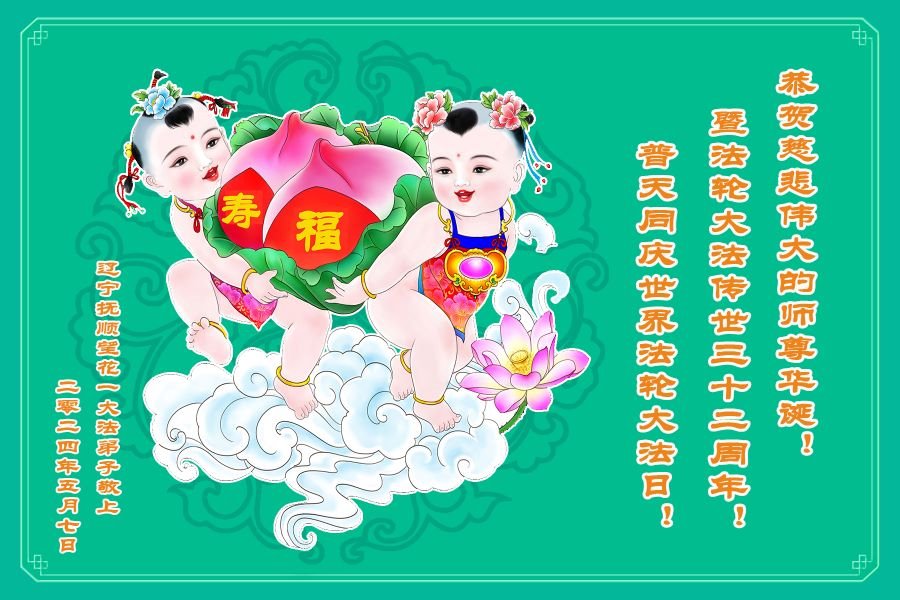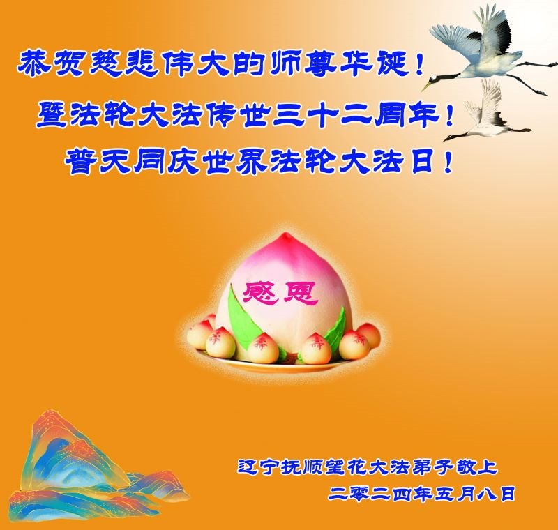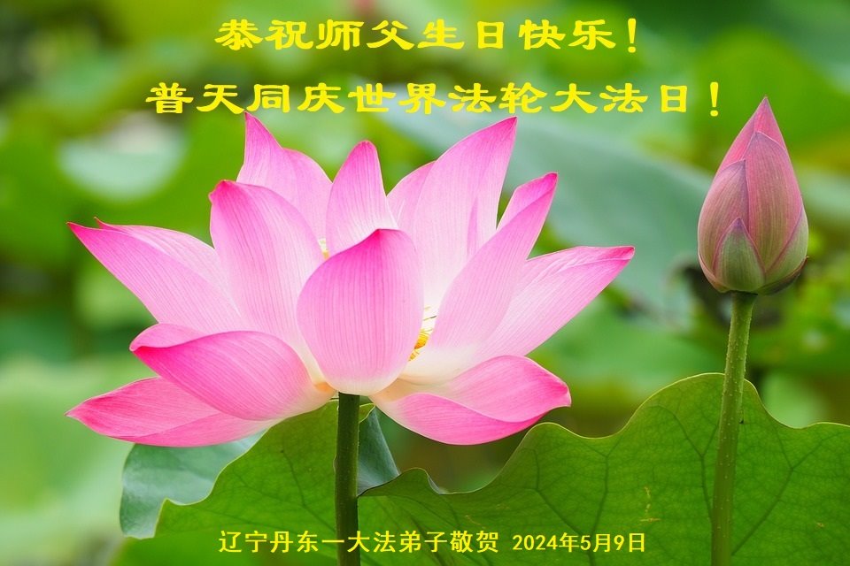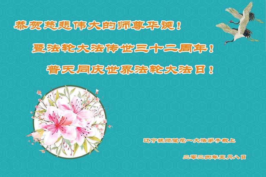【明慧网二零二四年五月十三日】 辽宁丹东一大法弟子恭祝师父生日快乐!同庆同祝世界法轮大法日!