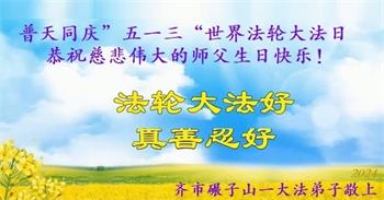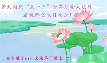 齐市碾子山一大法弟子恭祝慈悲伟大的师父生日快乐! 大陆一大法弟子恭祝世界法轮大法日暨师尊生日快乐!