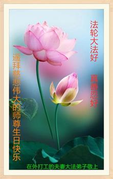 在外打工的夫妻大法弟子恭祝慈悲伟大的师尊生日快乐!