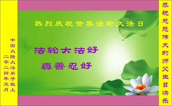 大陆一大法弟子全家恭祝师尊生日快乐暨祝贺世界法轮大法日!