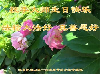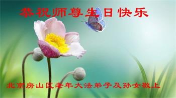 在师尊的保护下,我们不断的成熟起来,只有修好自己,做好三件事,才不辜负师尊的慈悲苦度!谢谢师父! 北京房山区一老年大法弟子恭祝师尊生日快乐!