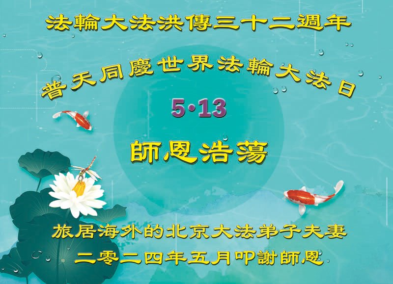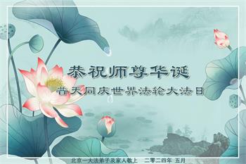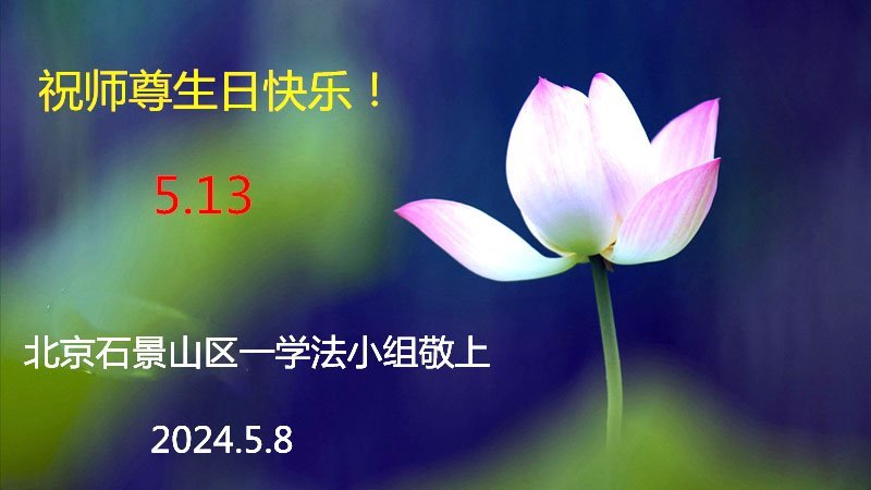 【明慧网二零二四年五月十三日】 北京一大法弟子及家人恭祝师尊华诞同贺世界法轮大法日!