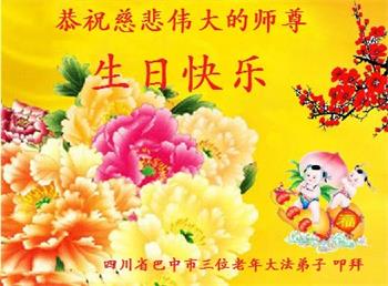 师父您辛苦了!在五一三这个殊圣的日子到来之际,首先恭祝伟大慈悲的师父生日快乐!普天同庆五一三第二十五届世界法轮大法日暨大法洪传三十二周年! 感恩伟大慈悲的师父救命之恩!弟子一定要做好三件事,多学法,学好法,多救人。 四川南充嘉陵区神殿乡一夫妻大法弟子叩拜 二零二四年五月五日 四川省巴中市三位老年大法弟子恭祝师尊生日快乐!