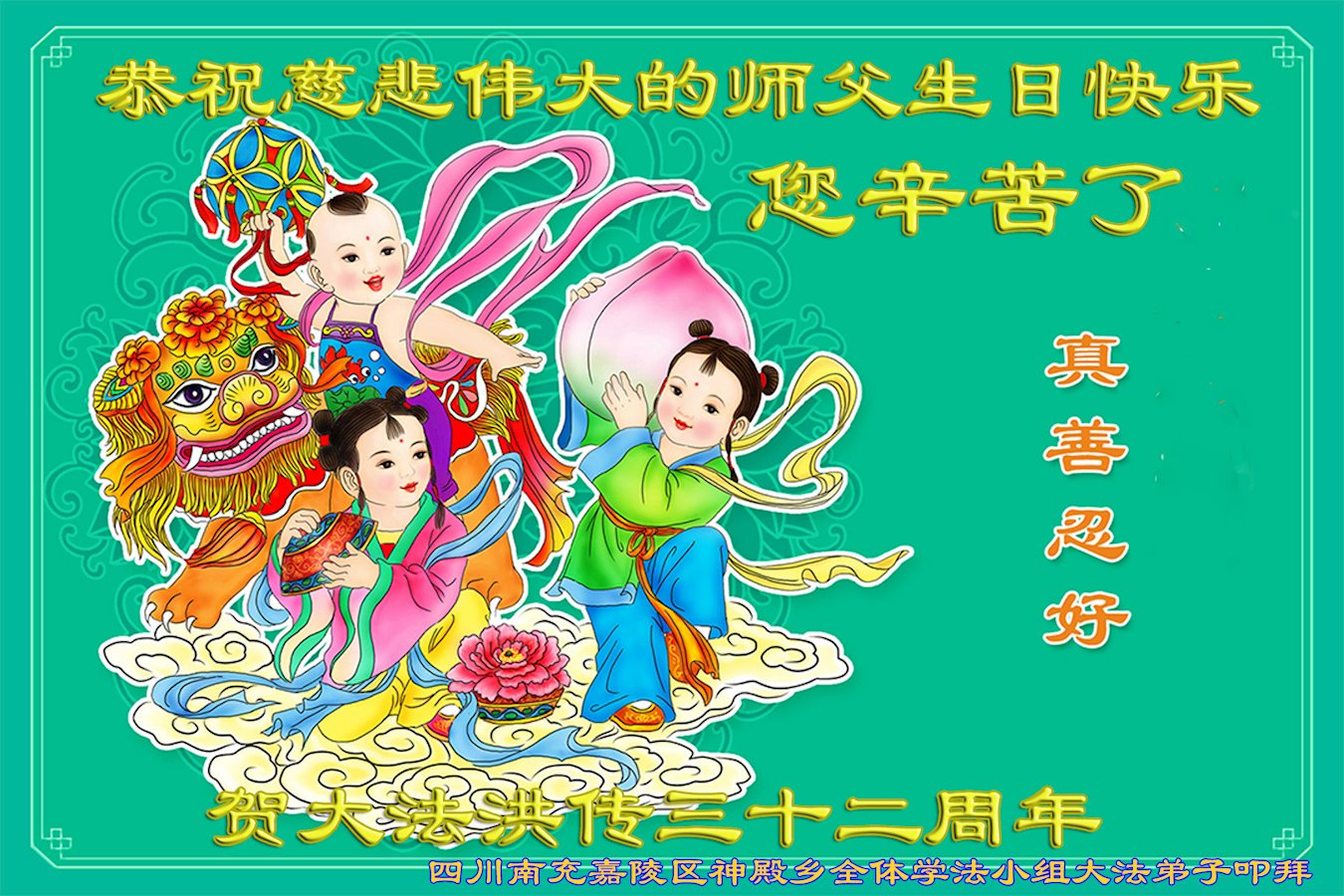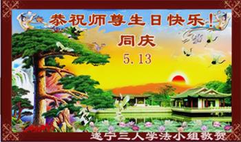 在五一三这个喜庆的日子,弟子感恩师尊的慈悲普度!感恩师尊传法三十二年的艰辛付出! 四川遂宁三人学法小组大法弟子恭祝师尊生日快乐!