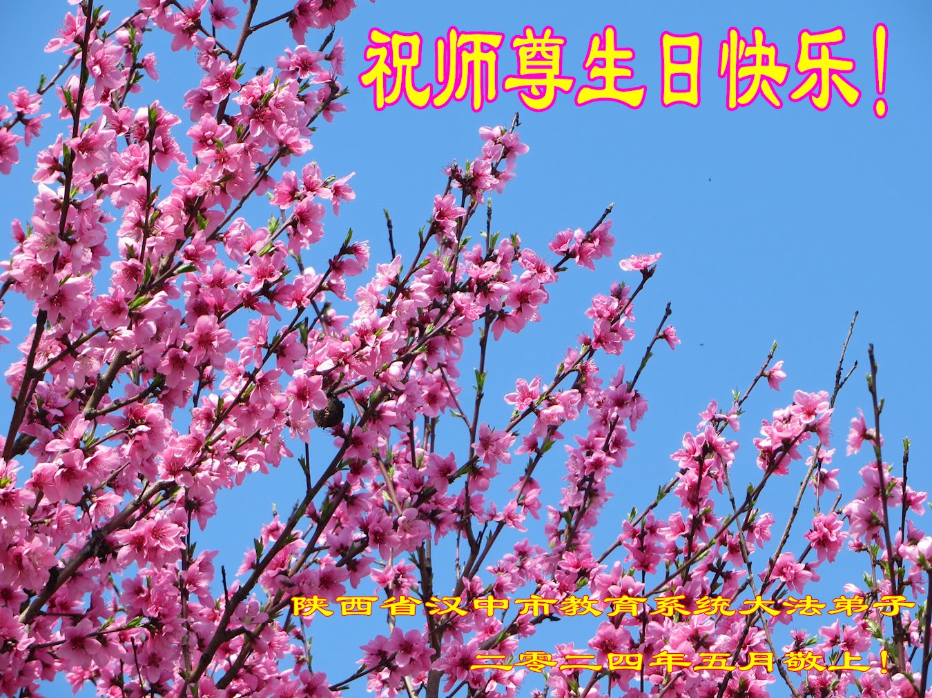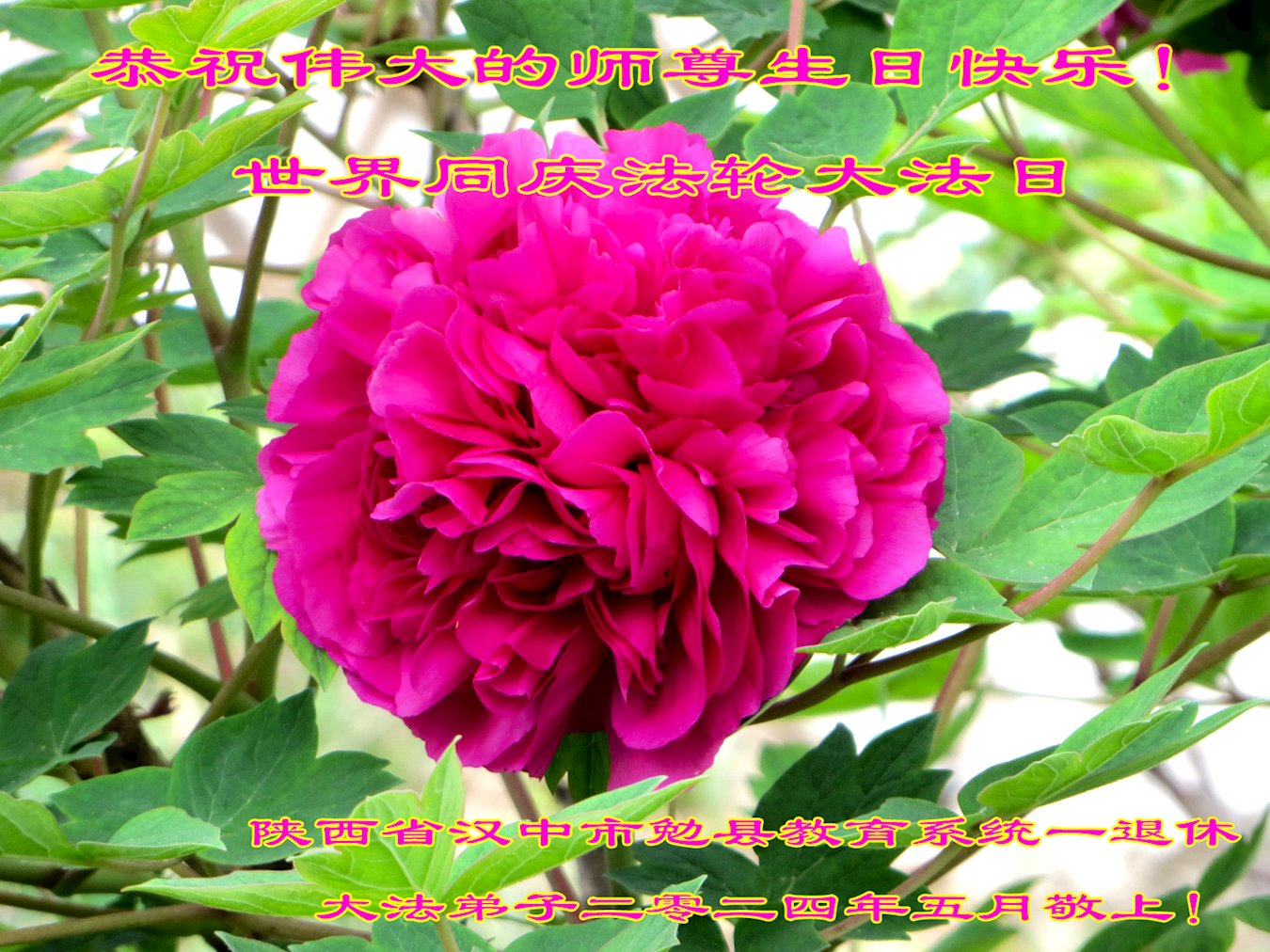 恭祝伟大的师尊生日快乐!世界同庆法轮大法日! 陕西省汉中市勉县教育系统一退休大法弟子敬上 二零二四年五月 陕西省汉中市教育系统大法弟子恭祝师尊生日快乐!