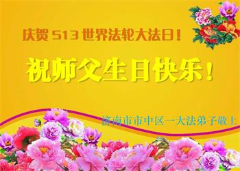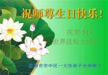 【明慧网二零二四年五月十三日】 山东济南市市中区一大法弟子恭祝师父生日快乐!庆贺513世界法轮大法日!