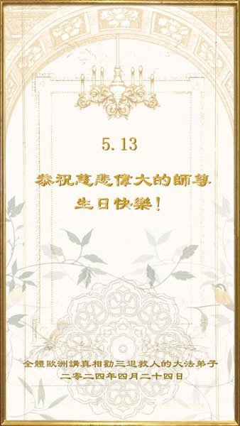 2024年5月13日 东北在欧洲的大法弟子恭贺师尊华诞!
