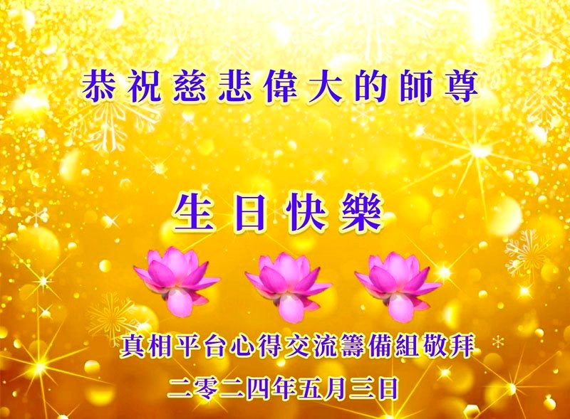 【明慧网二零二四年五月十三日】 真相平台心得交流筹备组大法弟子恭祝师尊生日快乐!