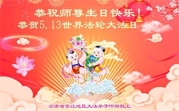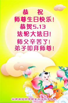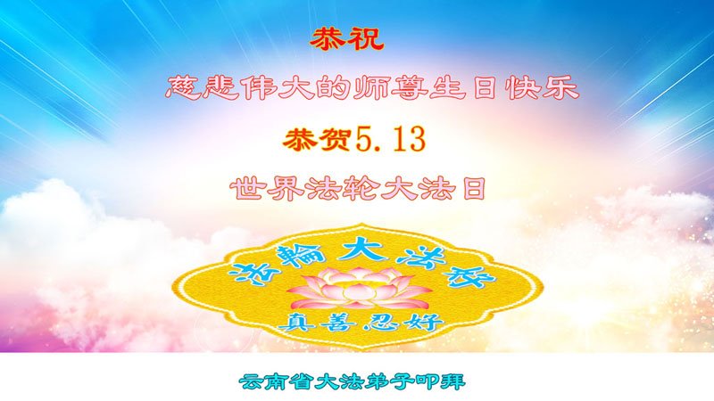 恭贺5.13世界法轮大法日!师父辛苦了! 云南省大法弟子恭祝慈悲伟大的师尊生日快乐!