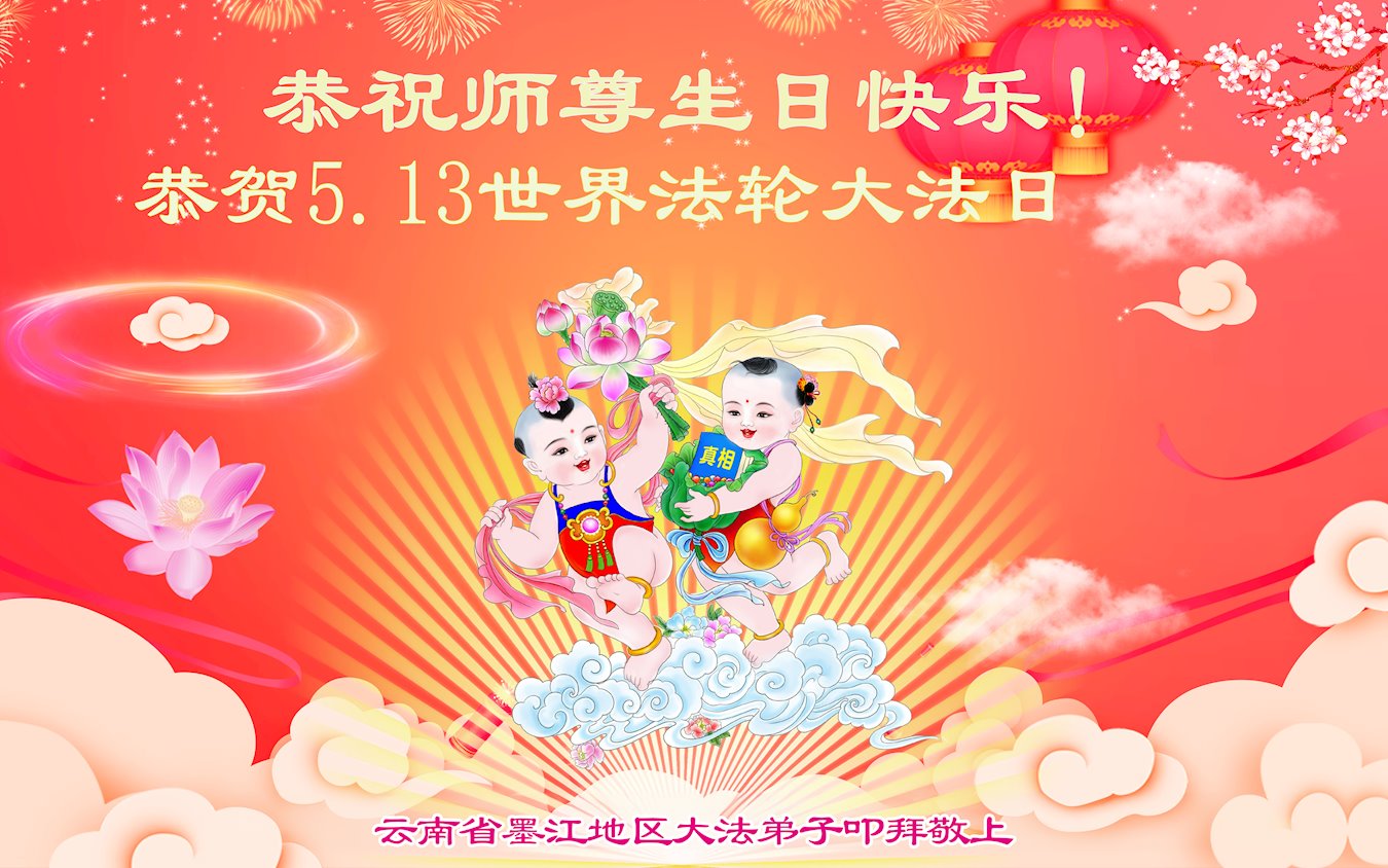 【明慧网二零二四年五月十三日】 云南省大法弟子恭祝慈悲伟大的师尊生日快乐!恭贺5.13世界法轮大法日!师父辛苦了!