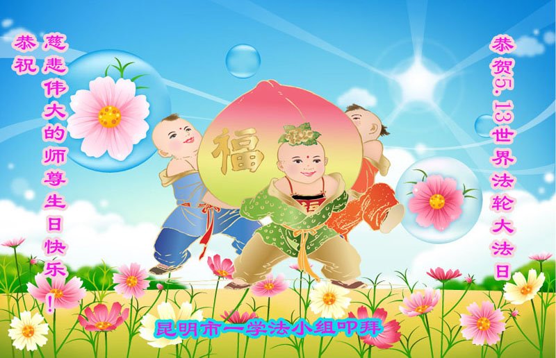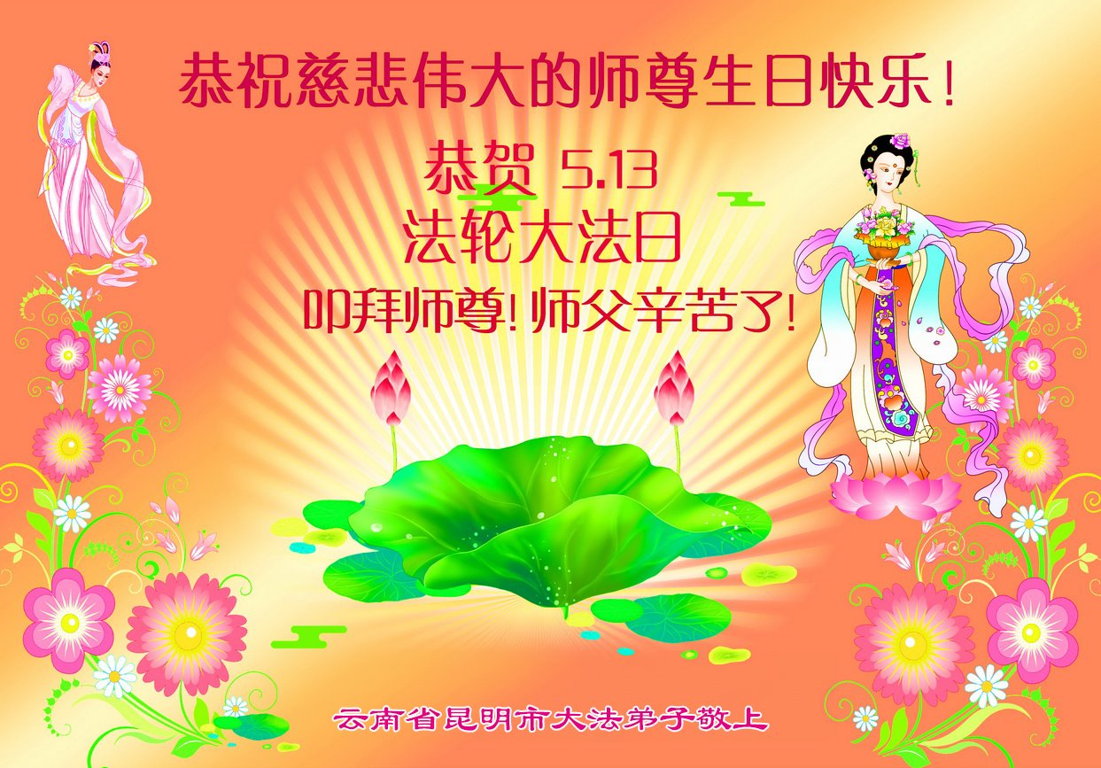 云南省昆明市大法弟子恭祝世界法轮大法日!恭祝师尊生日快乐!