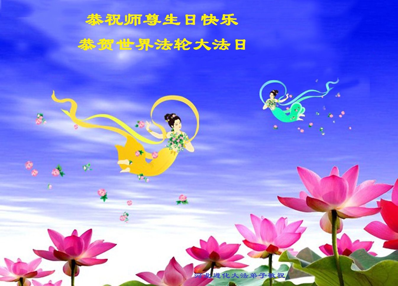 河北唐山大法弟子恭祝师尊生日快乐!普天同庆世界法轮大法日!恭祝师尊生日快乐!