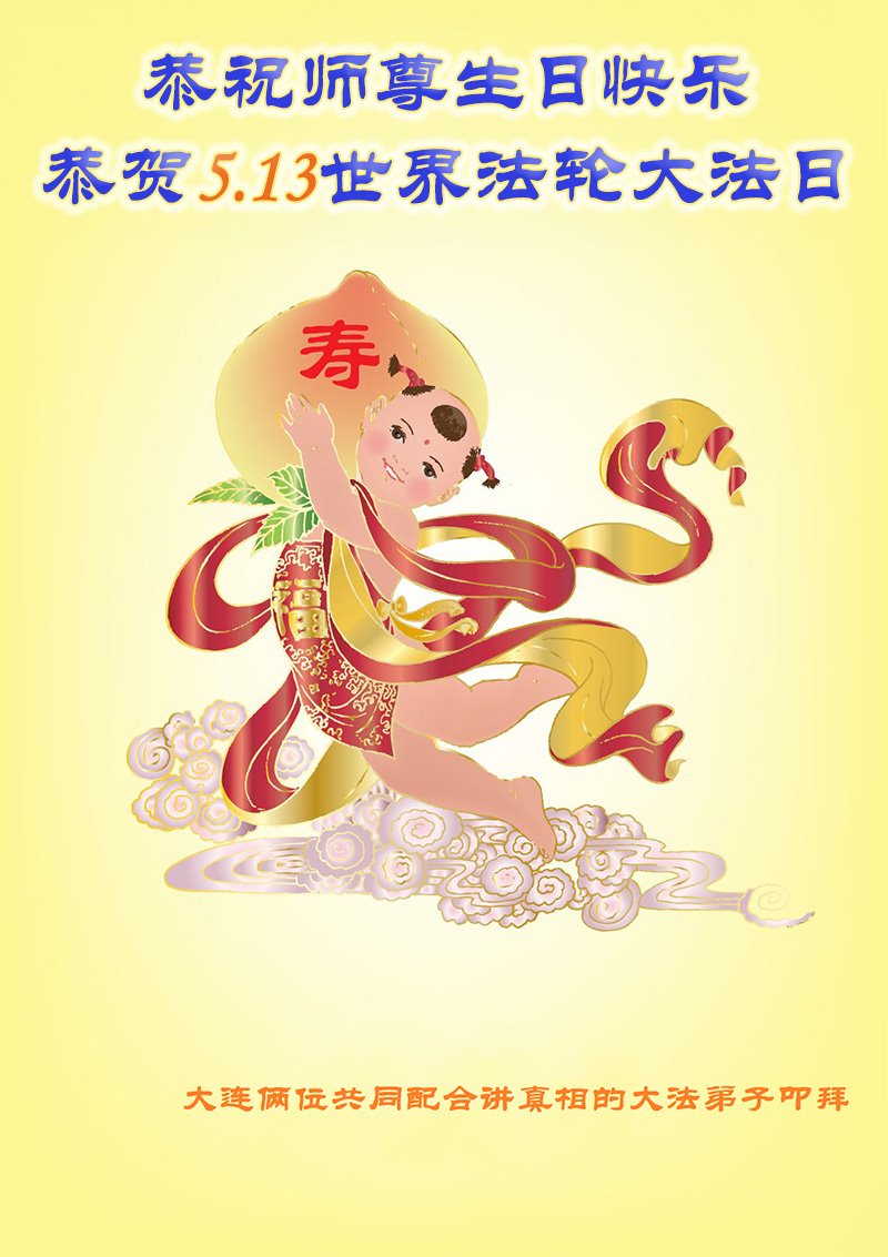 辽宁省大连市俩大法弟子恭祝慈悲伟大师尊华诞暨世界法轮大法日!