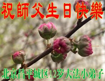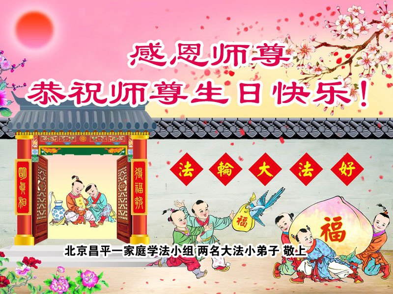 北京昌平一家庭学法小组两名大法小弟子恭祝师尊生日快乐!