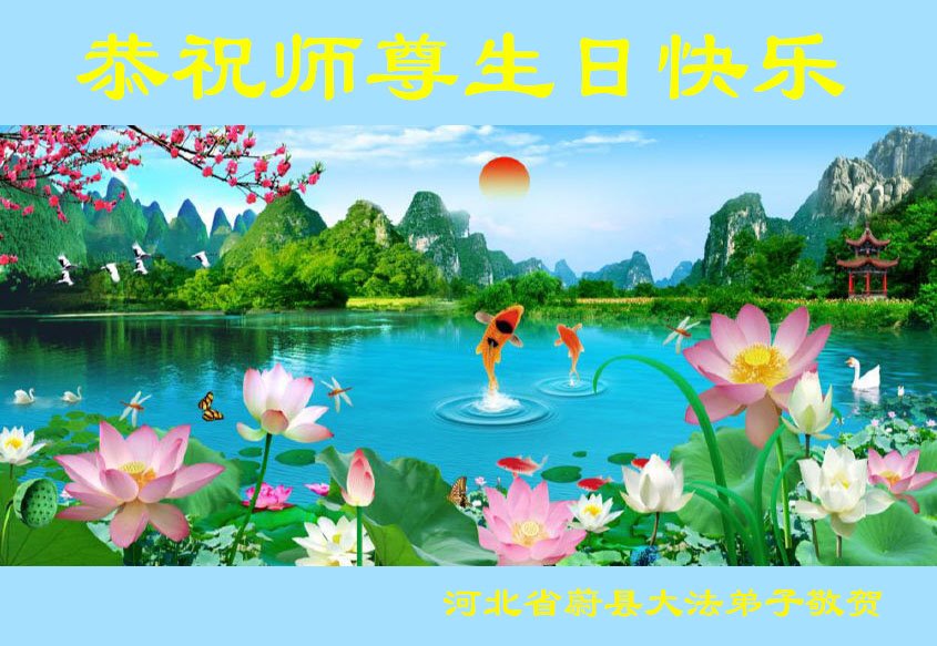 恭祝伟大师尊生日快乐! 感恩伟大师尊救度我们! 张家口高新区一学法小组向伟大师尊问好。 2024年5月9日 河北省张家口市蔚县大法弟子恭贺法轮大法日!