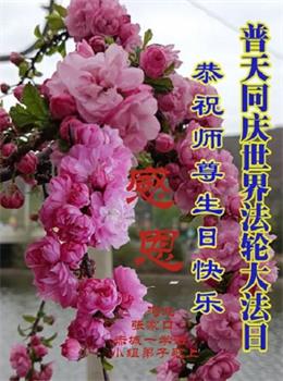 一年一度的世界法轮大法日即将来临,弟子衷心祝愿慈悲伟大的师父生日快乐!师父辛苦了! 蔚县大法弟子 河北省张家口高新区一学法小组大法弟子恭祝伟大师尊生日快乐!