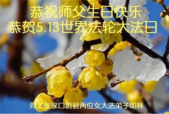 河北张家口蔚县两位女大法弟子恭祝师父生日快乐!
