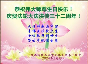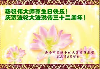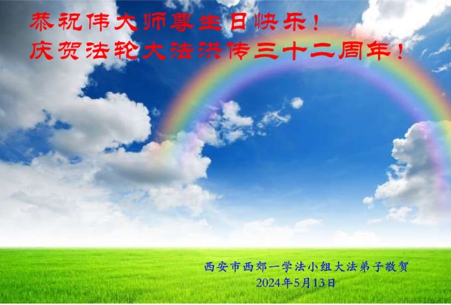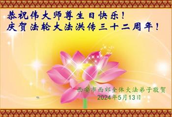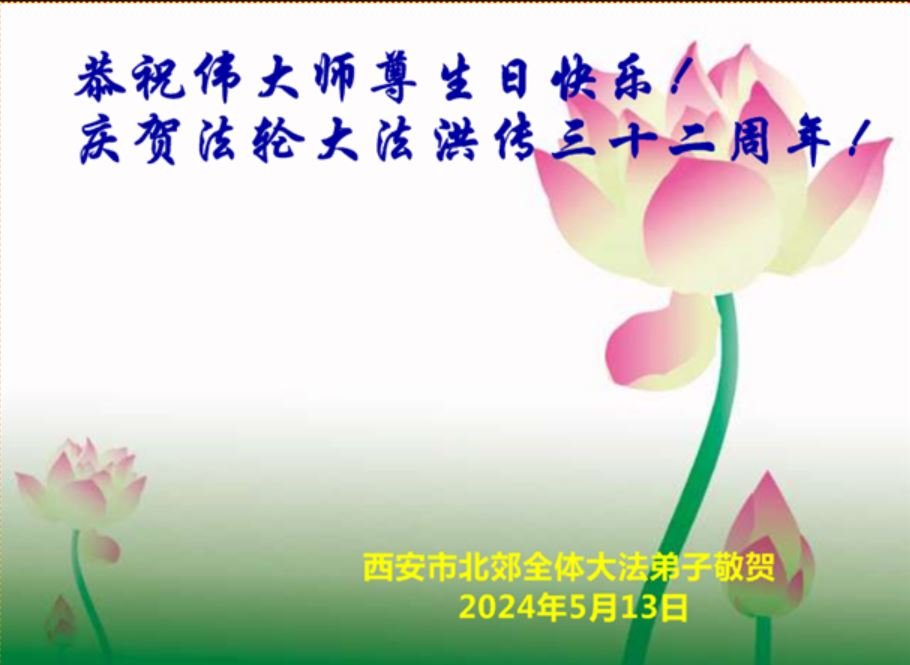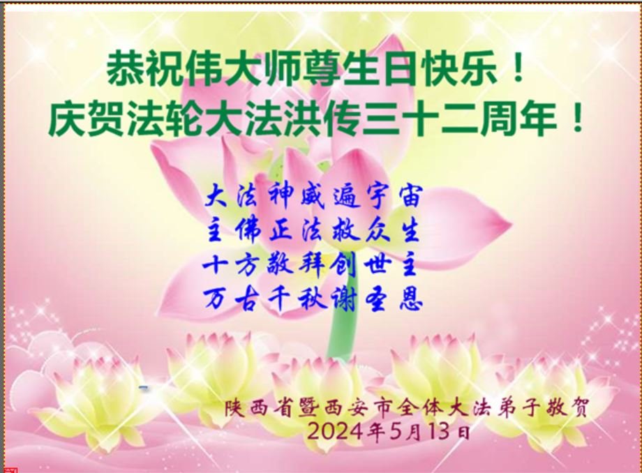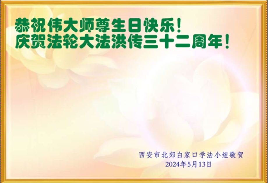 陕西省西安西郊全体大法弟子恭祝伟大师尊生日快乐!庆贺法轮大法洪传三十二周年!