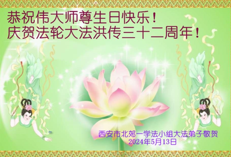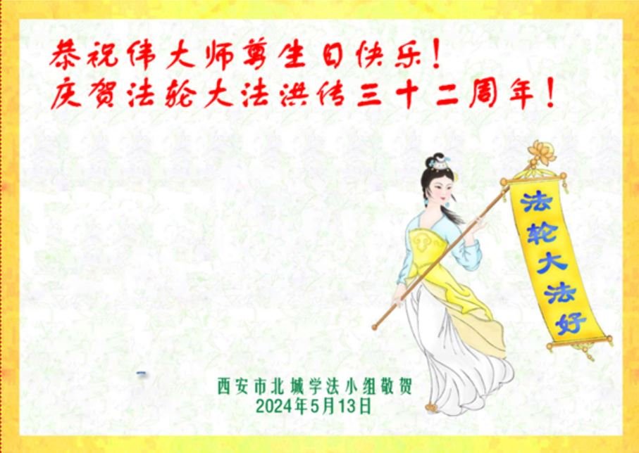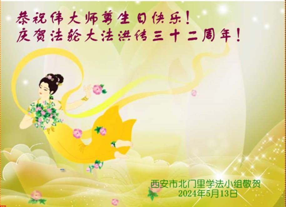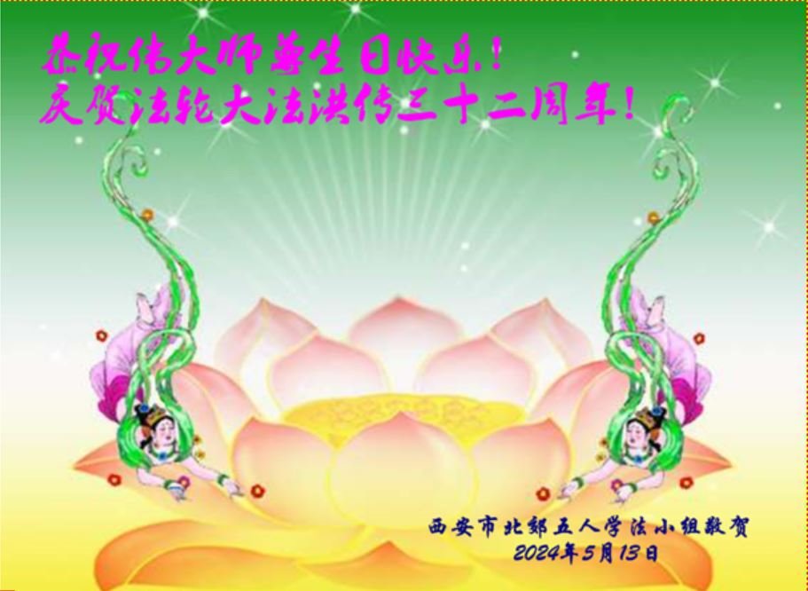 陕西省西安北城学法小组大法弟子恭祝伟大师尊生日快乐!庆贺法轮大法洪传三十二周年!