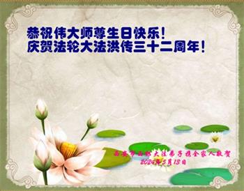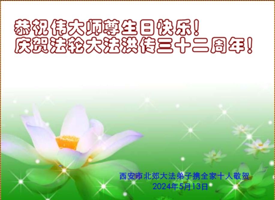 陕西省西安西郊大法弟子携全家人恭祝伟大师尊生日快乐!庆贺法轮大法洪传三十二周年!