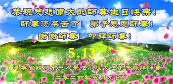 【明慧网二零二四年五月十三日】 辽宁省锦州市义县全体大法弟子敬贺师尊生日快乐!
