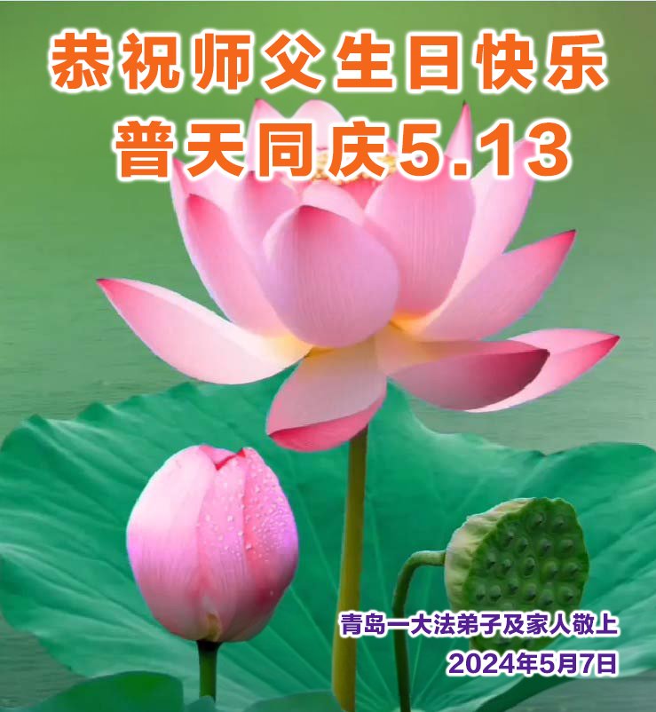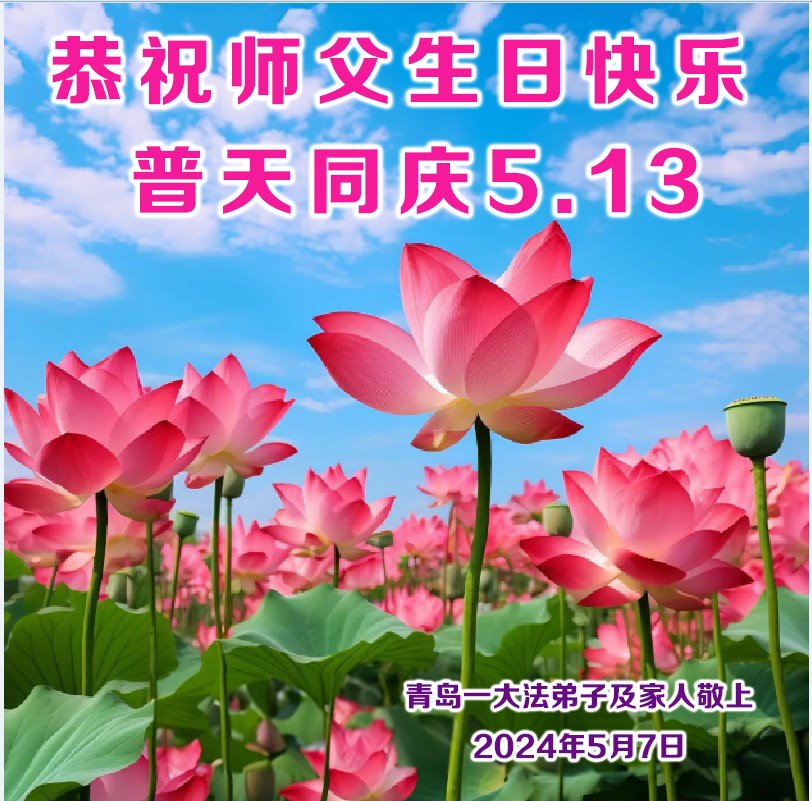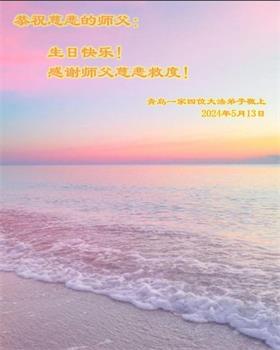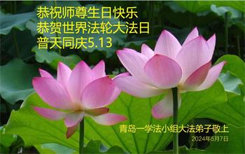 【明慧网二零二四年五月十三日】 山东省青岛一学法小组大法弟子恭祝师父生日快乐!普天同庆5.13世界法轮大法日!