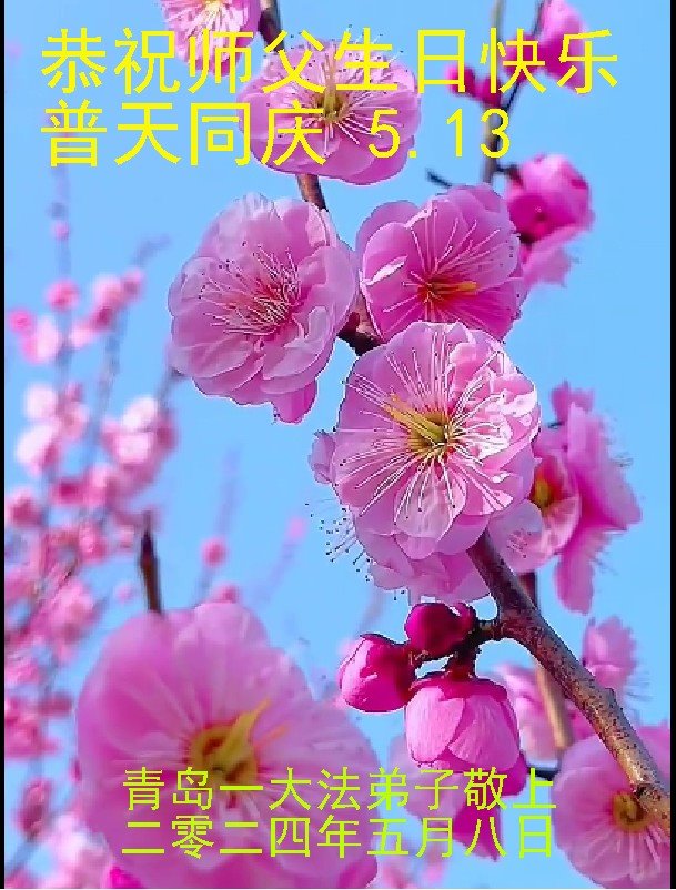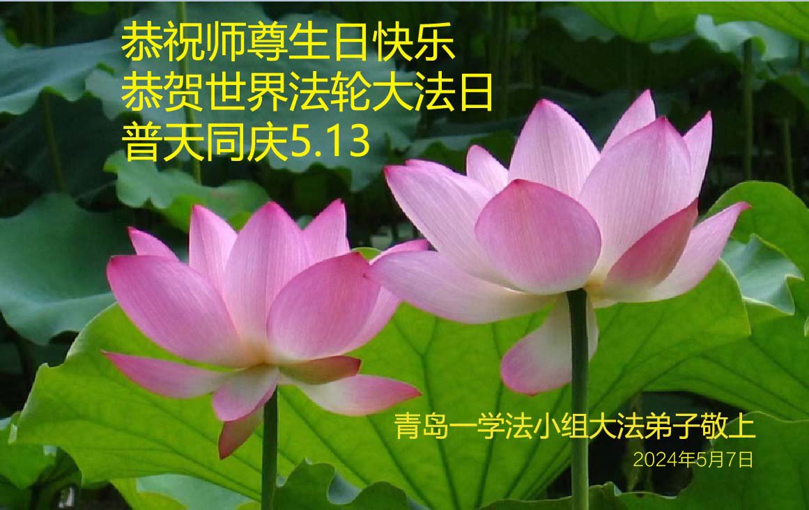 山东青岛大法学员敬上 二零二四年五月九日 山东省青岛大法弟子恭祝师尊生日快乐!恭祝世界法轮大法日!普天同庆、同颂!