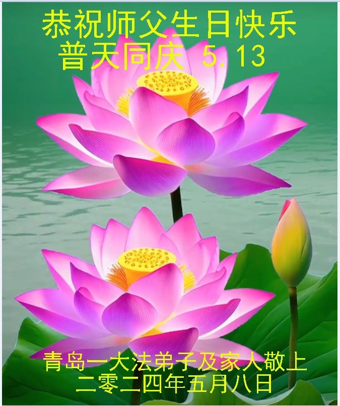 山东省青岛一大法弟子及家人恭祝师父生日快乐!普天同庆5.13世界法轮大法日!