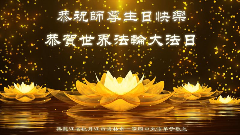 恭祝师尊生日快乐! 师父给予我们的太多了,弟子无以回报,只有好好修炼、走师父安排的路。 黑龙江一流离失所大法弟子恭祝法轮大法洪传三十二周年暨慈悲伟大的师尊华诞!