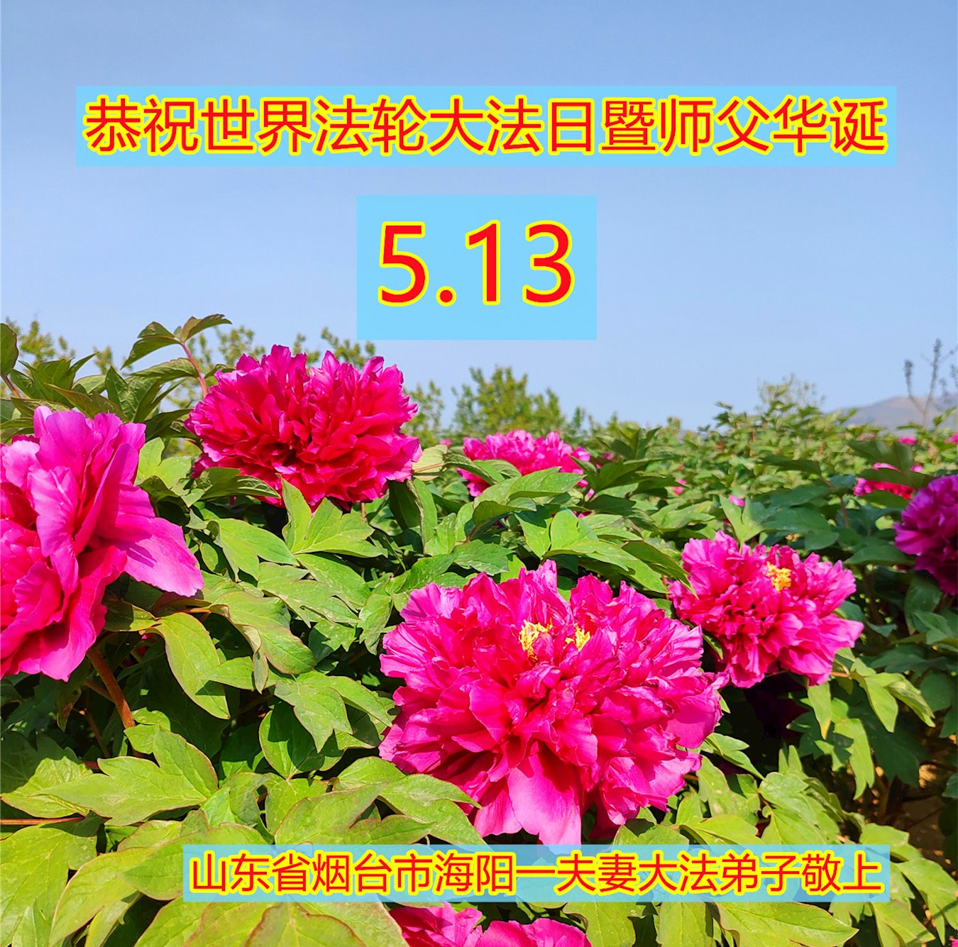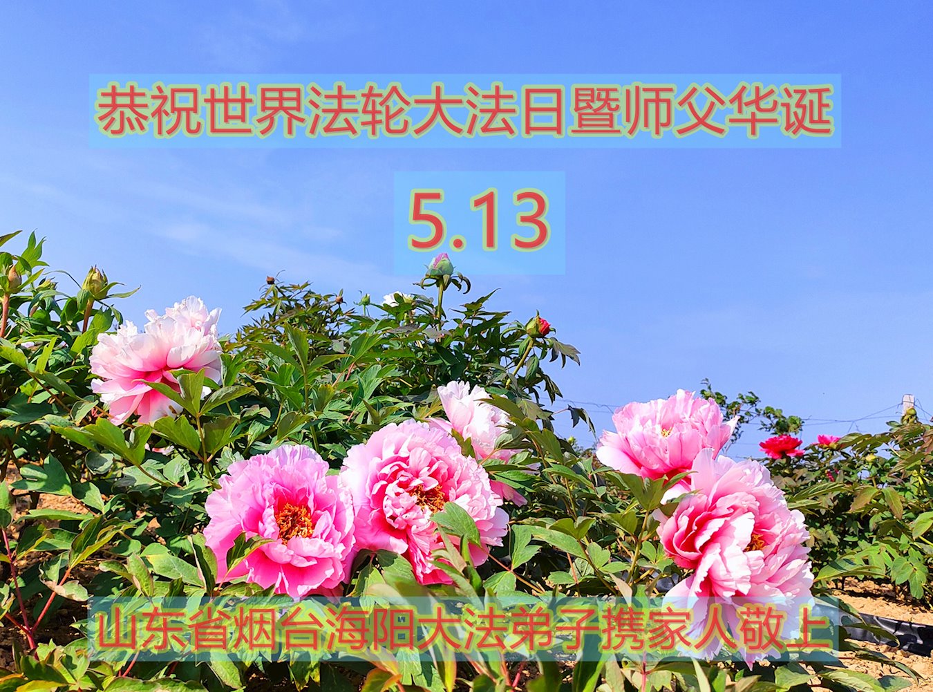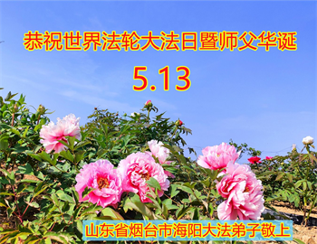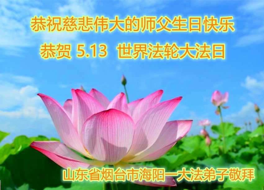 山东青岛莱西市农村大法弟子恭贺世界法轮大法日!恭祝师尊生日快乐! 山东省烟台市海阳市乡村夫妻大法弟子携全家恭祝慈悲伟大的师尊生日快乐!