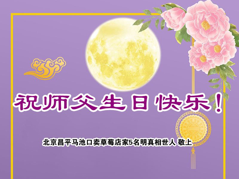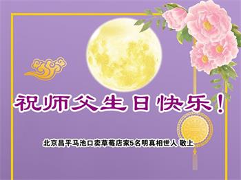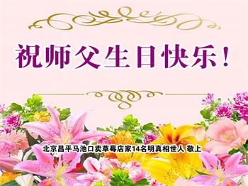 恭祝慈悲伟大的师父生日快乐! 北京怀柔一明真相百姓敬上 二零二四年五月十一日 北京昌平马池口卖草莓店家14名明真相世人祝师父生日快乐!