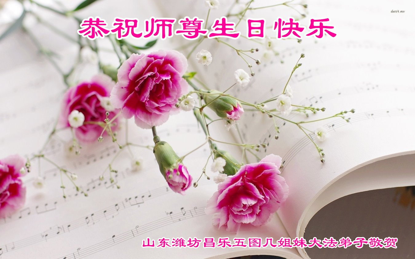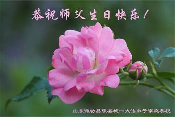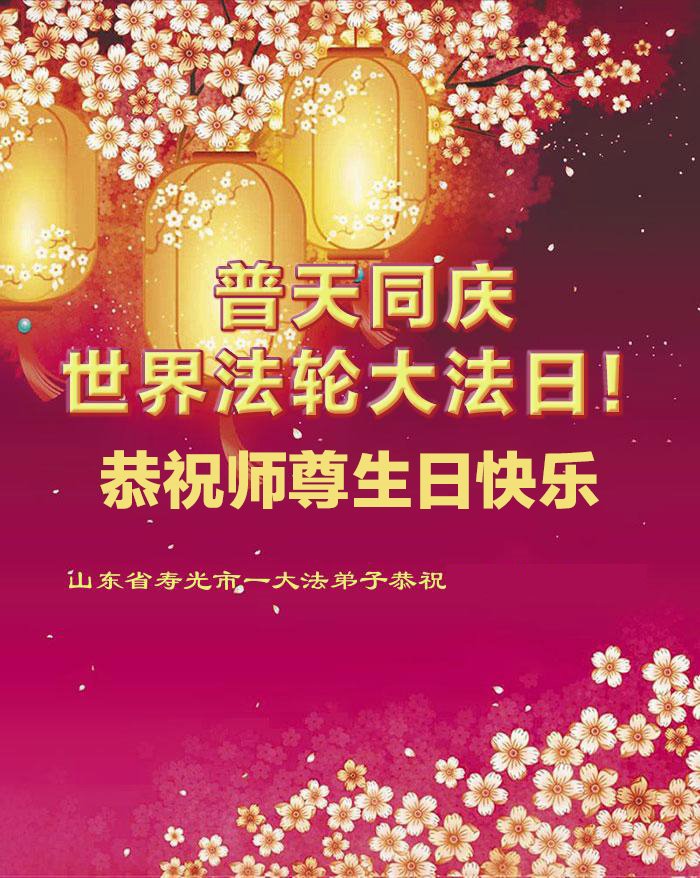 师尊您好: 师尊您辛苦了!同祝师尊生日快乐!同庆“五一三”世界法轮大法日! 同颂大法洪传世界三十二周年! 千言万语道不尽弟子对师尊的感恩,唯有精進实修,做好三件事,已报师恩!愿师尊在新的一年里少一份操劳,多一份欣慰!跪拜师尊! 山东省寿光市一大法弟子敬上 山东潍坊昌乐县城一大法弟子家庭恭祝师父生日快乐!