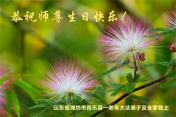 山东省潍坊市诸城市一学法小组大法弟子恭祝师尊生日快乐!