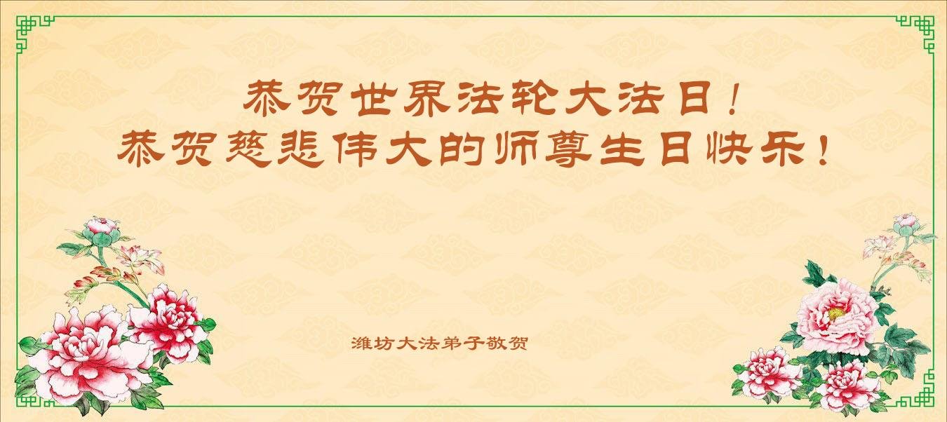 恭祝慈悲伟大的师尊生辰快乐! 山东潍坊一学法小组大法弟子敬上 山东潍坊老年大法弟子恭贺世界法轮大法日!