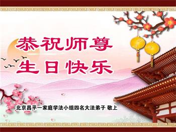 北京昌平一家庭学法小组四名大法弟子恭祝师尊生日快乐! 北京昌平一大法弟子全家恭祝师父生日快乐!