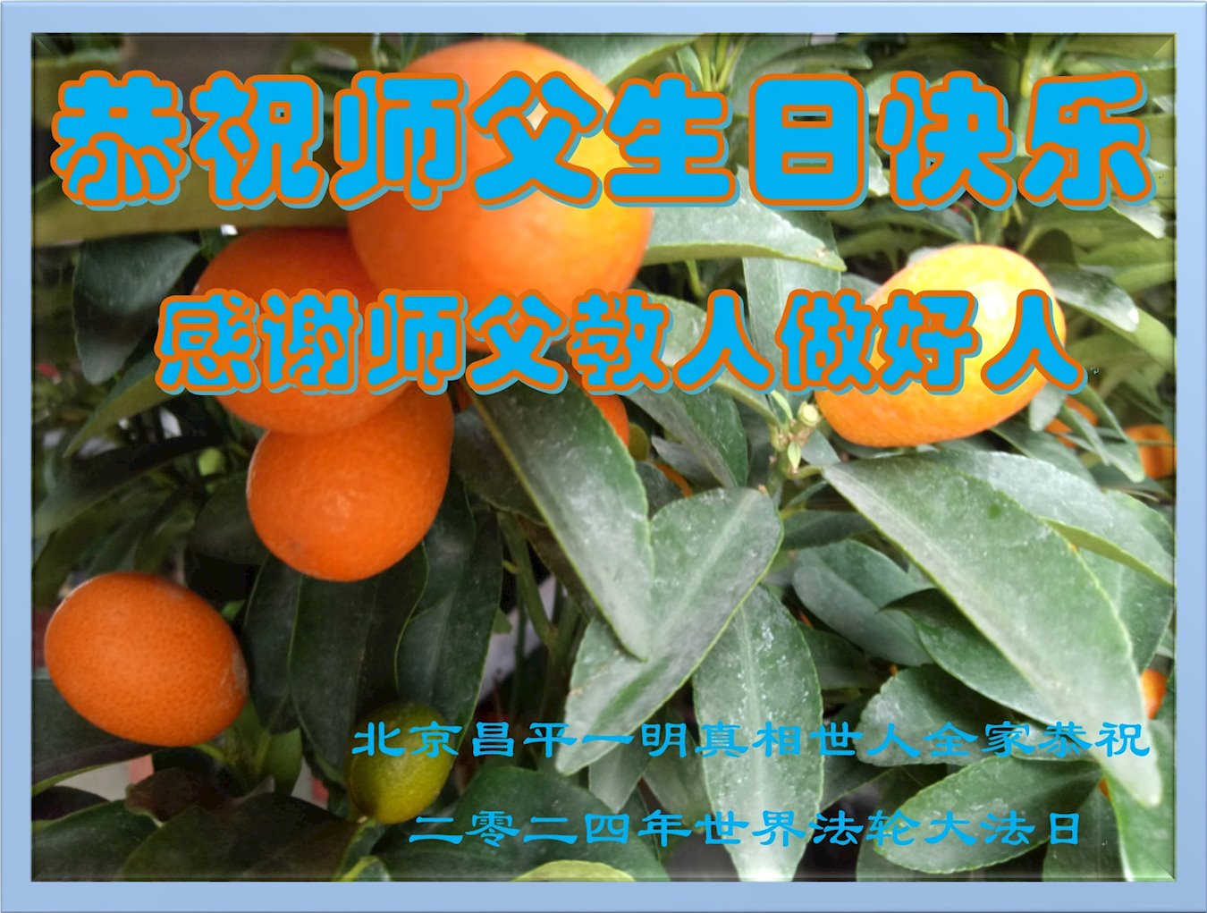 我是一九九六年得法的大法弟子,得法后身心受益,婆家娘家两个大家族都沐浴佛恩,儿子结婚后,亲家大家族也都知道“法轮大法好,真善忍好”,做事都与人为善。在二零二四年五月十三日世界法轮大法日到来之际,我代表大家族所有受益的亲人恭祝慈悲的师父生日快乐!谢谢师父!师父辛苦啦! 北京昌平老大法弟子携两大家族所有亲人敬上 二零二四年五月十一日 北京昌平城区老年大法弟子恭祝伟大的师尊生日快乐!