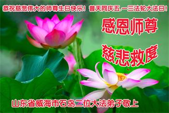 山东省威海市石岛二位大法弟子恭祝慈悲伟大的师尊生日快乐!