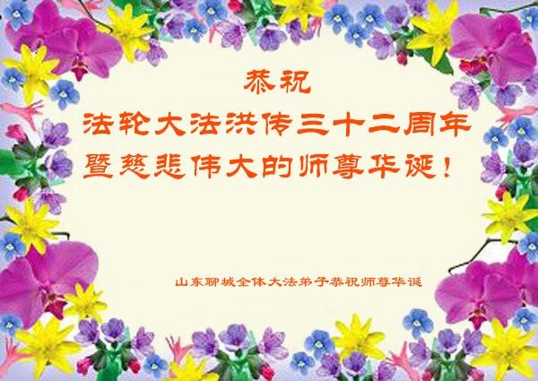 恭祝法轮大法洪传三十二周年暨慈悲伟大的师尊华诞! 山东省泰安市两个学法小组大法弟子敬上 山东威海天池一学法小组大法弟子恭贺世界法轮大法日!