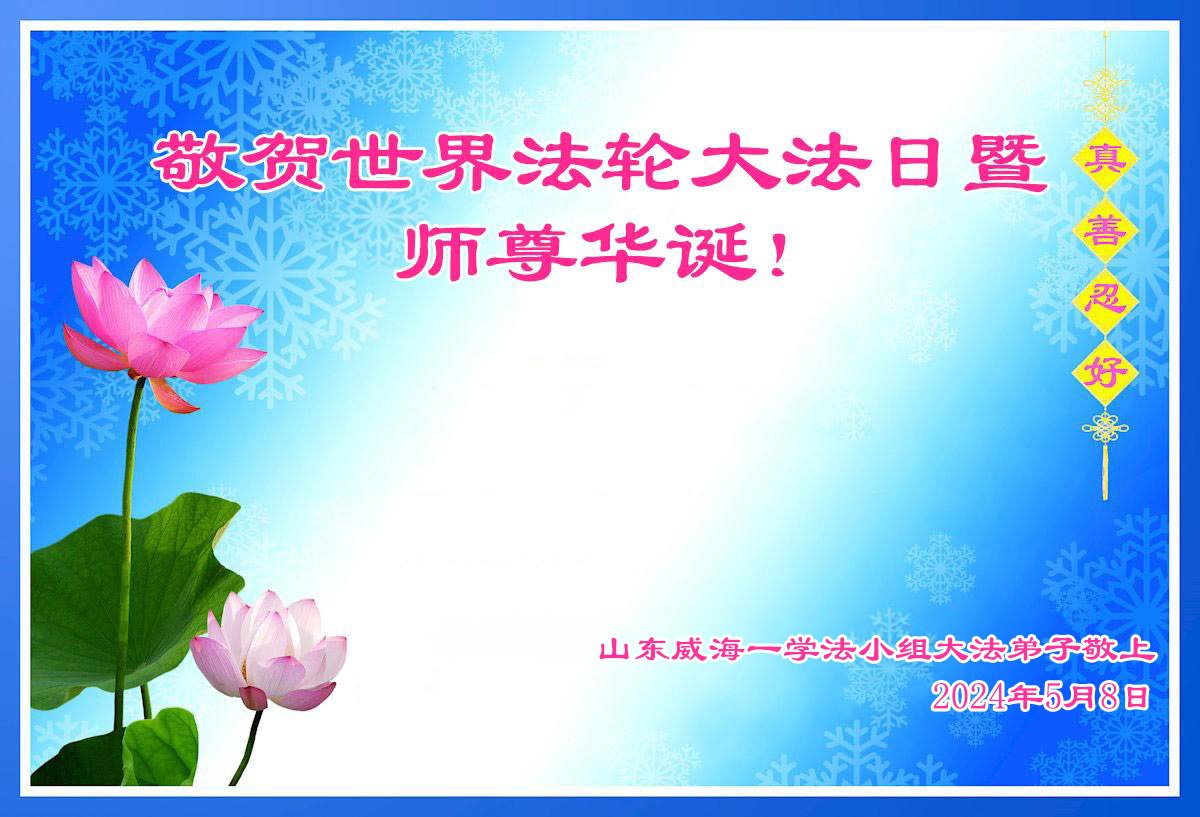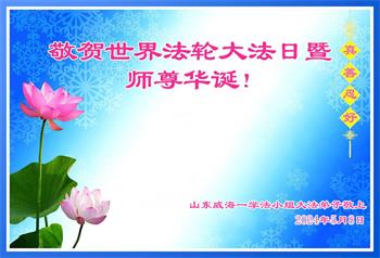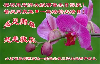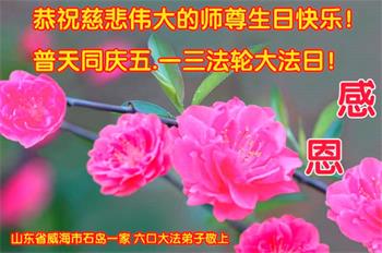 敬贺世界法轮大法日! 山东省海阳市一学法小组大法弟子恭祝师父生日快乐!谢谢师父的慈悲保护与救度! 山东省威海市石岛东山三十八位大法弟子恭祝慈悲伟大的师尊生日快乐!