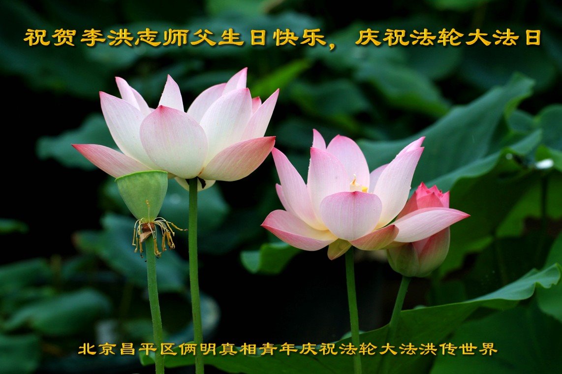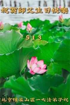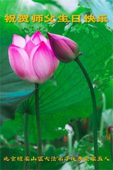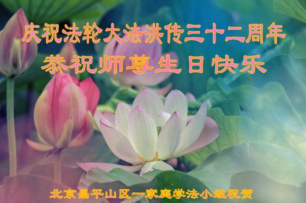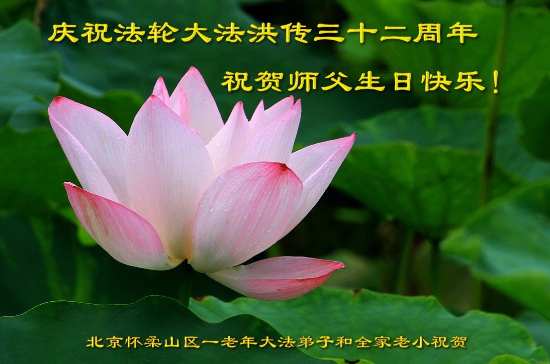 慈悲伟大的师尊您好!在法轮大法洪传三十二周年日来临之际,弟子恭祝您生日快乐!感恩您的慈悲救度。谢谢师父! 北京昌平一明真相世人恭祝师父生日快乐!