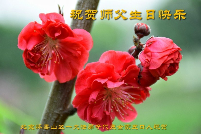 法轮大法好,真善忍好。 北京怀柔山区一大法弟子代表全家五人祝贺师父生日快乐!