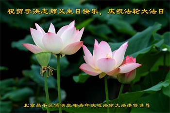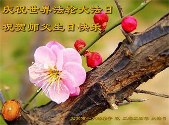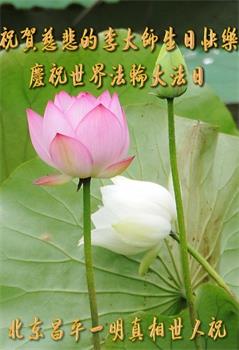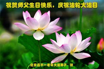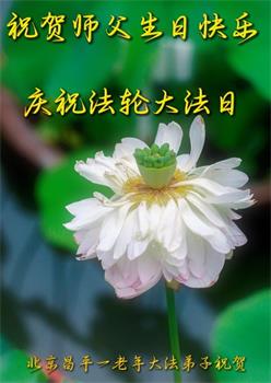 北京昌平一老年大法弟子祝贺师父生日快乐!庆祝世界法轮大法日!