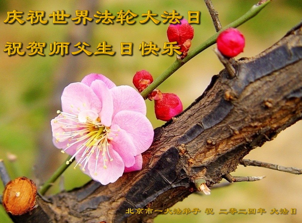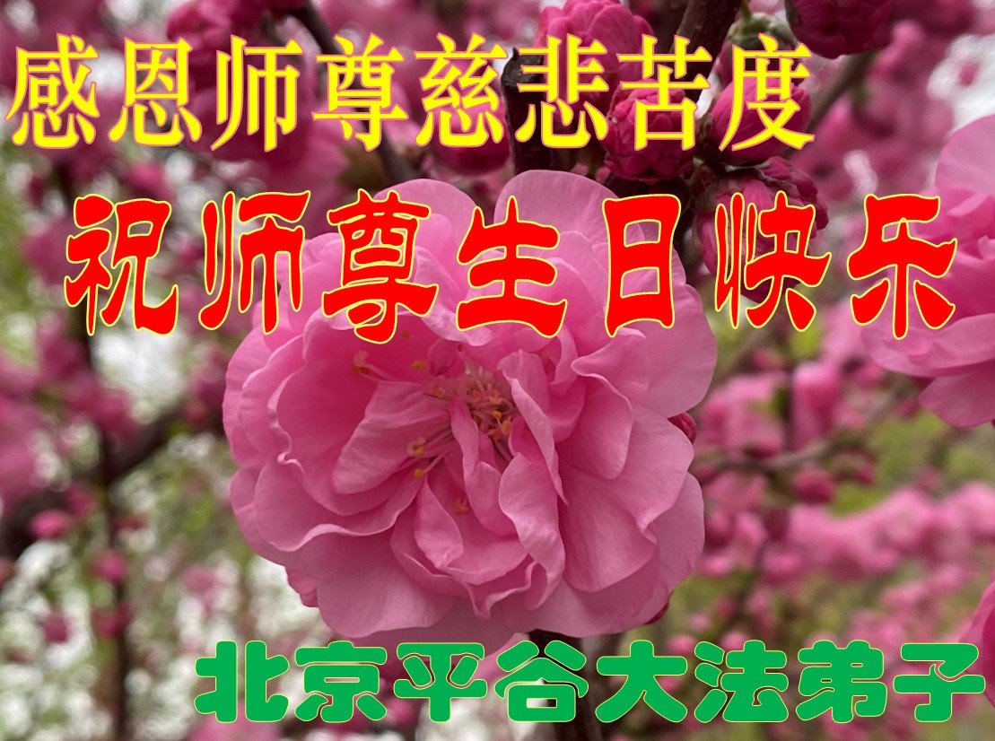 恭贺5∙13世界法轮大法日!恭贺法轮大法洪传三十二周年! 感恩师尊慈悲救度苍宇层层众生,您为我们所有的大法弟子付出了一切。尤其是我这样没有文化的人,您付出的更多。感恩师父慈悲救度,师父您辛苦了,恭祝师父生日快乐! 二零二四年四月三十日 北京平谷大法弟子恭祝师尊生日快乐!
