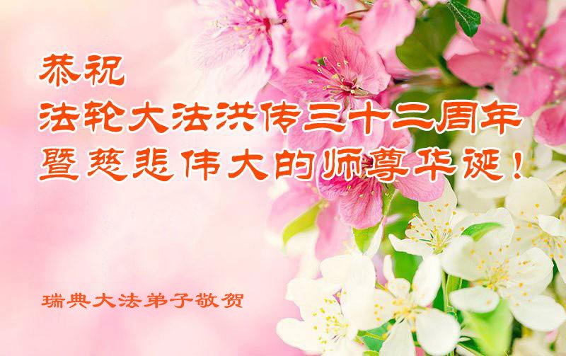 瑞典大法弟子恭祝慈悲伟大的师尊生日快乐!恭祝世界法轮大法日及大法洪传世界三十二周年!