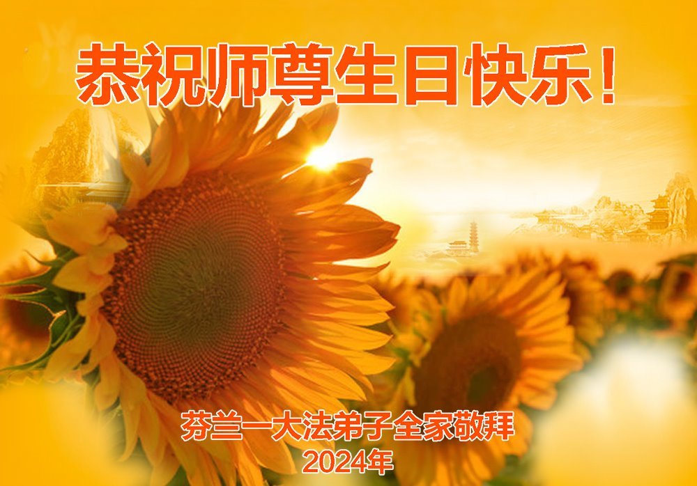 芬兰大法弟子全家恭祝慈悲伟大的师尊生日快乐!恭贺世界法轮大法日!